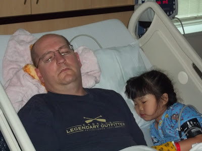 Well, her procedure went very well. She was a little dazed and dozy for most of the morning; we dealt with headaches for quite awhile. Finally, we were able to get Dayna up and about, which helped her headaches. She really just wanted to lay in the hospital bed all day and watch movies (I guess "it's not like she gets to do this everyday"). In fact, we had a very hard time getting Dayna to agree to come home. She wanted to stay overnight!