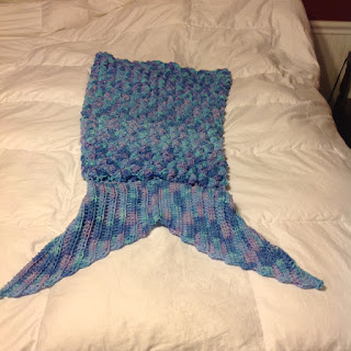 I also finished a mermaid tail blanket for Annie's birthday. I confess. This was not a fun project. But I love her, and she loves mermaids, and so it's done! A bonus was the yarn belonged to my late Grandma Luebcke.
